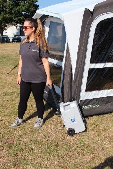 The Blue Diamond Aqua Caddie is a large 25ltr capacity transportable water container, manufactured from food grade plastic making this ideal for drinking water or can be used for grey wastewater if required. For ease of mobility, the Aqua Caddie features integral wheels and a telescopic pull-out handle feature.