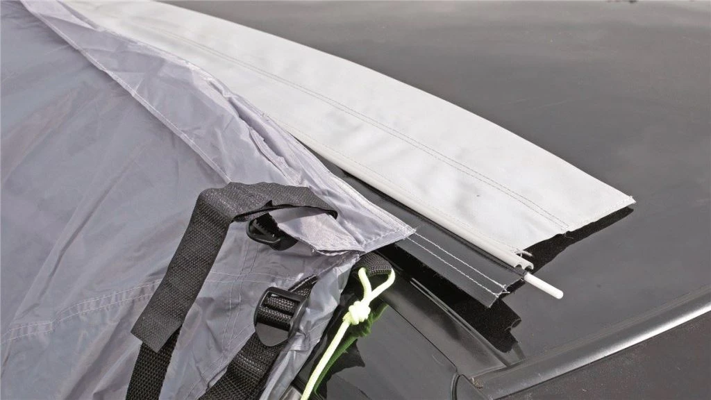 Fantastic design from Outwell allows you to use magnets to connect your awning / touring tent to your vehicle. Some high roofed vehicles and van conversions are fibre-glass or aluminium. Please check the area you wish to secure the magnetic strip to with a magnet before purchasing.