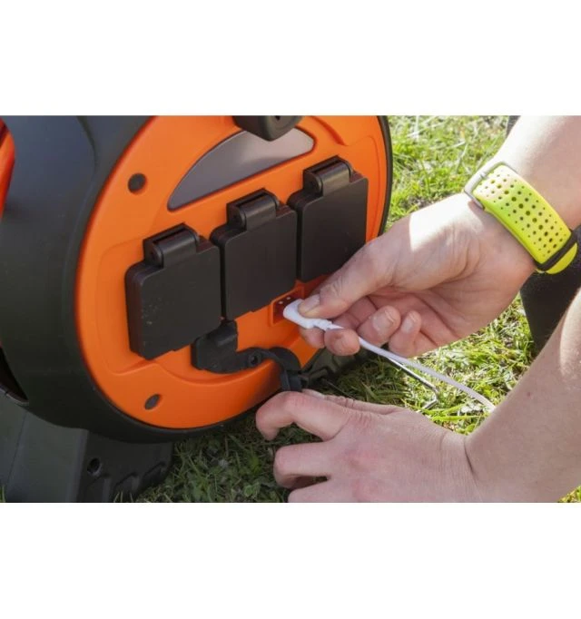The Voltaic Roll Away provides 15 metres of cable allowing you freedom for positioning your mains electric.